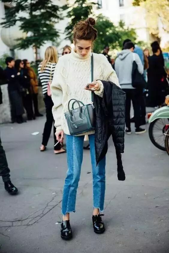秋冬能选择的上衣有很多种,牛仔裤和哪种搭配最适合呢?