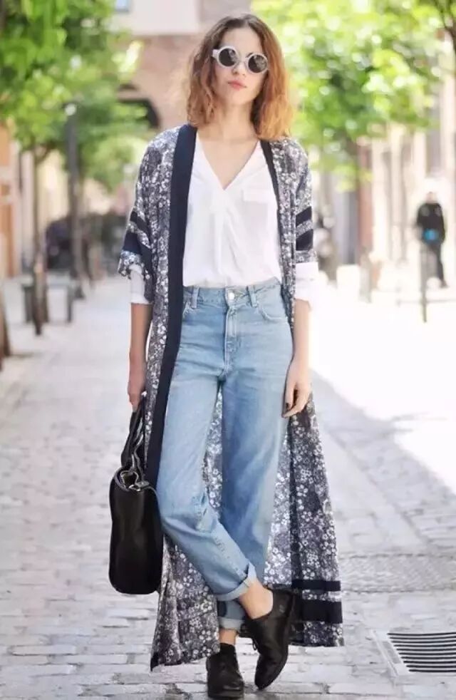 紧身牛仔裤依旧是最常见的搭配单品,穿得好不好看与腿长并没有太大关系。只要把握好上下身比例也能有大长腿的效果。