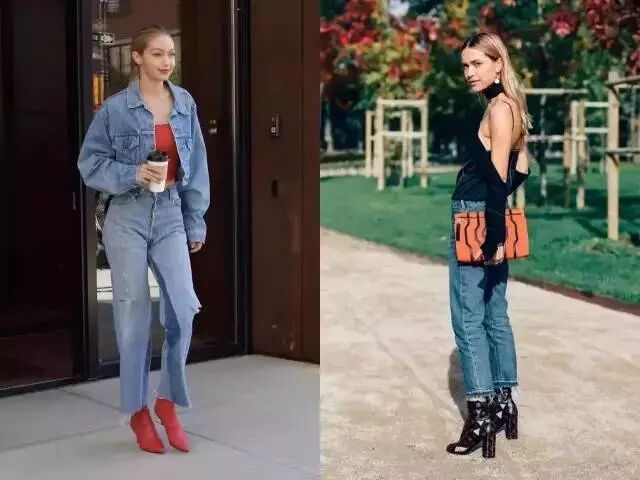 你可以选择高跟短靴或是铆钉机车靴来搭配,无论是腿粗还是腿细,高个儿还是娇小,牛仔裤与短靴的组合都能hold住。