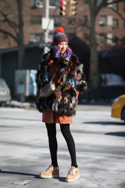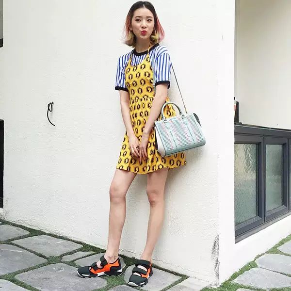 混搭很难了,彩色混搭更难,本来就是彩色头发再演绎彩色混搭,简直难到可以狗带了。而对她来说,演绎彩色驾轻就熟,灵动而鲜活。