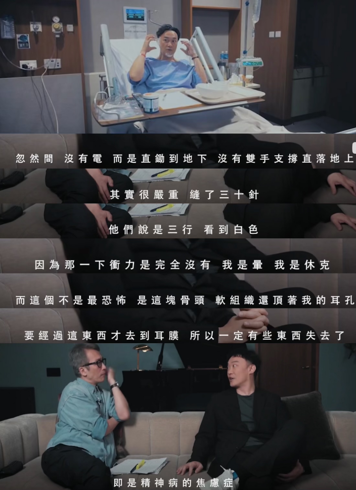 更恐怖的是,那块被摔到的骨头、软组织,还曾顶着陈奕迅的耳朵,导致他听声音会存在不够精准的情况——