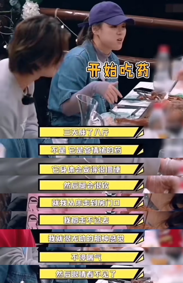 马思纯因为焦虑症,情绪最差的时候躯体化已经到了——身体僵硬、腿软没法走路、无法喘气,眼睛看不见的地步。