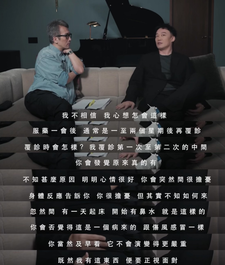 所以,陈奕迅很快也接受了现实:“既然我有这个东西,便要正视面对。它是个和伤风感冒一样的病,要及早看医生,才不会演变得更严重。”