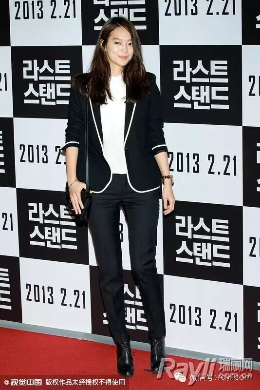电影《背水一战》VIP首映活动,申敏儿白衫黑裤干净洒脱,镶边小西装透露学院风的文艺干练。
