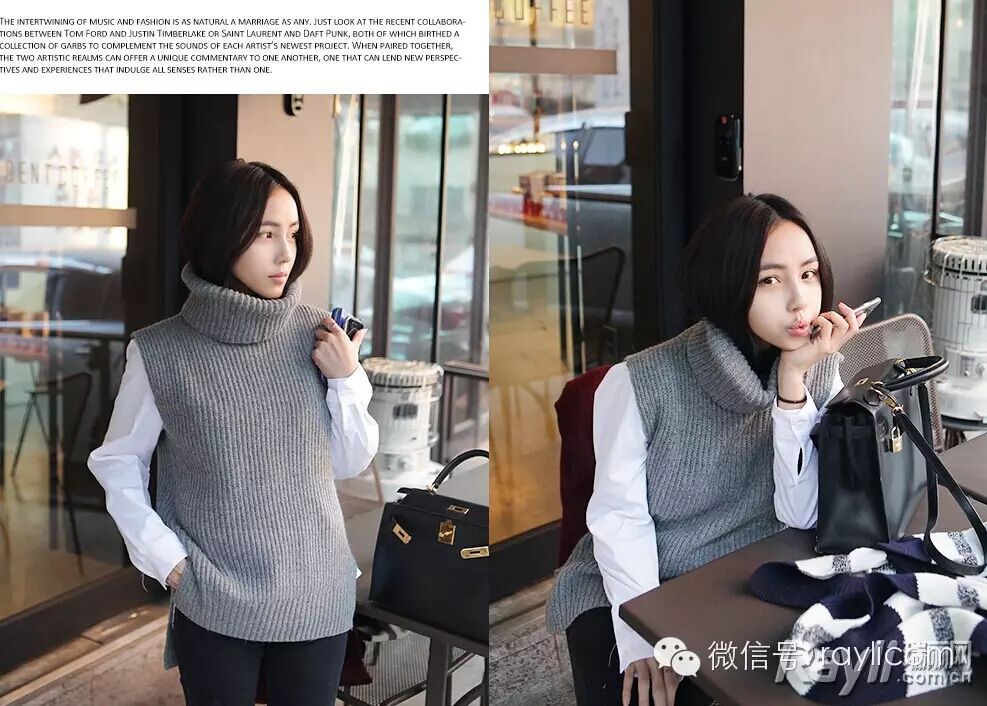 宽松高领的针织背心本季大热,搭配简洁的单品增添质感。