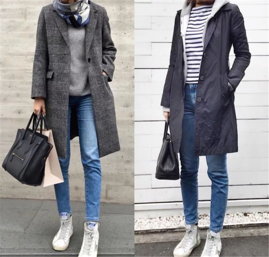 冬季可以适当的减少面积,露出一双纤细的脚踝,也立马提升纸片的效果。外搭可以选一款H型大衣,大衣记得开着的门襟穿着,能够将腰身两侧的肉肉修饰掉。