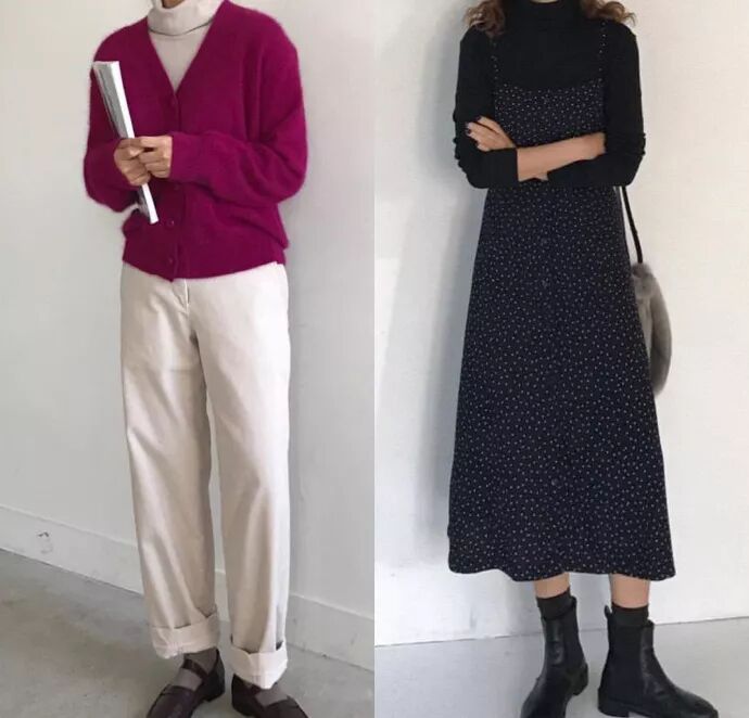 冬季脖子怕冷的妹子,可以内部叠穿一件小高领。虽然视觉效果不及露肤,但还是会有点效果的哦。