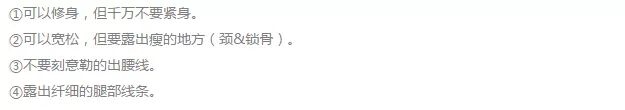 苹果型的姑娘,千万别轻易去勒腰线,一穿不好腰没出来,反而挤出了大胸。让上半身显的更加的魁梧。如果想要营造一点腰线,可以随意的系一条腰带,千万别系太紧哦。