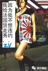 2001年的时候,赵薇在美国曼哈顿为《时装》杂志拍摄春夏服装的宣传照片,而这照片就是赵薇身披一块“日本军旗”方巾。