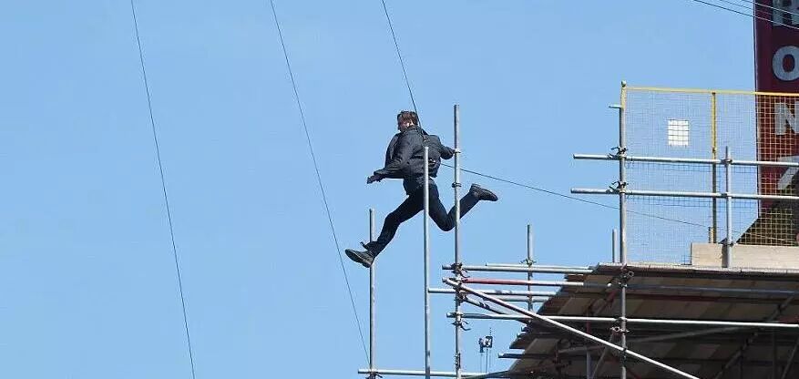 8月份在拍摄新片《碟中谍6》时,汤姆克鲁斯在拍摄一组飞跃楼顶的镜头之时,发生意外。造成两处脚踝关节骨折,不得不休息数月。
