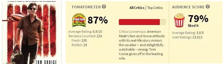 《美国行动》口碑相当不错,并且人们对汤姆克鲁斯在本片中的表演都是交口称赞。