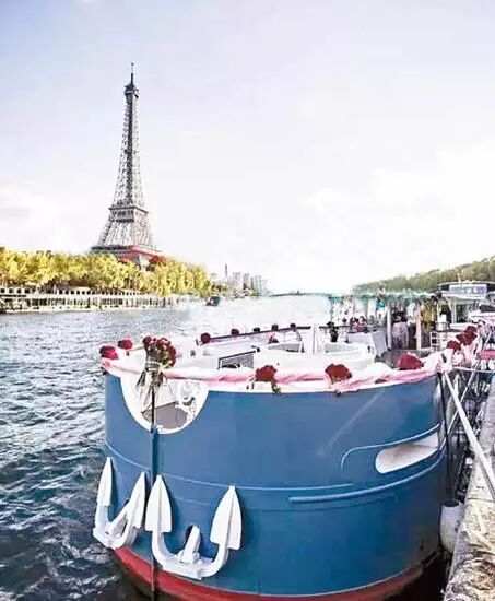▲陈晓包下观光船,在巴黎铁塔前向陈研希求婚