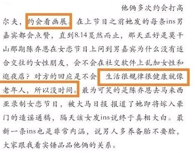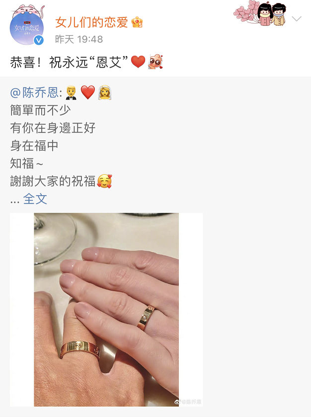 42岁陈乔恩官宣嫁“渣男”,我一点都不意外 她姐生活 港台女星 2022-04-01 20:30:54 780 创作不易,用心坚持,欢迎请BaGua喝几杯爱心咖啡!打赏并支持本文 打赏并删除本文 果然,春天就适合甜甜的爱情!陈乔恩和Alan,在3月最后一天签订了一生契约。简单而不少,有你在身边正好。他俩官宣之后,《女儿们的恋爱》立马送上祝福——恭喜!祝永远“恩艾”❤恋综售后,齁翻全场!其实昨天下午,就有媒体曝光了陈乔恩和Alan的登记现场——陈乔恩开心到直呼“我结婚咯”!网友也早已来了一场盛大的狂欢!陈乔恩事业爱情双丰收,可不就是赚大了。他们的感情之路,还得从《女儿们的恋爱》说起。那一季,节目组邀请了四组嘉宾,三对真情侣,只有陈乔恩和Alan互不相识。已单身五年的陈乔恩,不介意只有一个人,也不介意再多一个人。她参加恋综,就是来找对象的,并且非常认真。在和Alan认识的第二天,就把最现实的问题抛出。她的上一段恋爱,就因为聚少离多终结。如今面临着同样的局面,如果真的在一起,马来西亚和北京的远距离恋爱,该如何维持?在Alan看来,只要两颗心是靠近的,地域上的距离从来不是问题。这次沟通,没有达成一致。并且,这个问题一直横亘在两人之间,始终困扰着陈乔恩,直至最后的抉择时刻。经过深思熟虑,她最终决定尊重自己的心,义无反顾地去追寻那个未知的答案。而这份勇气的来源,就是Alan——他带给了陈乔恩无数的温暖与心动。彼此相处的每一个瞬间,都被妥帖收藏;抉择时,每一次都早到的坚定的选择;并且,这份感情是她能真切感受到的,而不只是为了节目所做出的噱头。陈乔恩要的一直都很纯粹,渴望被人用心了解、呵护。事实证明,她没有看错人。彼此心意想通,只需一句最简单的“我们在一起吧”,恋爱之旅就此开启。但所有的爱情,都不是童话。他们的旅程,更是充满了荆棘。陈乔恩作为公众人物,一举一动都被放大,恋爱自不必说。很快,Alan的“黑历史”,就被公之于众。粉丝放出“实锤”,爆料Alan人品低劣、满口谎话,私生活不检点,在节目上的表现都是装的。一时间,渣男言论肆虐。刚在一起的小情侣,就此被推上风口浪尖。但事实是什么呢?所谓的传销公司,根本就是子虚乌有,不仅合法,还受到了当地的鼎力支持。爆料里提到的女性,都是Alan的朋友。图上的钢管舞女郎,她的本职是会计,钢管舞只是爱好,而且她是通过正常途径学习的。所谓的色情照,是人家作为内衣模特的工作照,而她本人学的是法律;而且,作为一个素人,看到这样被随意编排的消息,她真的很生气。最后,和别人打高尔夫约会、看画展、养备胎,更是胡编乱造。Alan只是做过高尔夫教练,因为高尔夫是他的个人兴趣。陈乔恩也转发澄清,并对被无辜牵连的人表示抱歉,也希望向日葵们不要担心。本以为乌龙到此就能结束,竟还是低估了部分粉丝的“执着”。新的闹剧就此开场。他们只相信自己看到的,对澄清的内容毫不关心,再次表达了对陈乔恩的失望,相继脱粉。粉丝希望陈乔恩幸福无可厚非,但在正主已经澄清的情况下,还如此无理取闹,实在超出了追星的边界。明星谈恋爱,能接受就继续支持,不能接受就选择离开,何必要为曾经的美好徒增裂痕。况且,陈乔恩是一个成年人,完全能分辨孰真孰假,也能为自己所做的一切承担。所幸,明事理的人还是多数。她和Alan也用实际行动,证明了这份感情的值得。在不见面的日子里,作画传情。用陈乔恩想念的雨命名;灵感来源,依旧是他的缪斯。相聚的日常,全是爱与甜蜜。恋爱一周年的纪念,充满了仪式感,温馨而美好;521,无名指的约定,陈乔恩满身都散发着被宠爱的气息,这一刻她就是公主;称呼的改变,撒狗粮的美好,预示着两人迈向了新的征程;生活里情侣间的欢乐小把戏,都在向我们传达着幸福;恋爱2周年的庆祝,继续书写彼此的故事。果然,情侣装秀恩爱,虽迟但到。满屏的粉红小心心,小猫咪都嫉妒了;穿上情侣装,一起出发,用脚步去丈量世界。最初担心的距离,如今早已被爱填满。当然,也会有些小插曲。有次,网友发现陈乔恩多次编辑了微博,配文“愿你遇良人”,从而猜测两人分手。很快,Alan就晒出了二人合影否认。还在照片上写道:“让我们一起关注正面事情,而不是关注那些假新闻与谣言,我们很好。”陈乔恩也紧随其后,晒出了两人拍摄的遛狗视频。这辟谣的速度,着实又让我们感受了一把小情侣的如胶似漆。还记得之前,陈乔恩为了Alan的名字,特地发了一条微博解释。果然,爱一个人,只希望他的一切都是最好,就连名字都不愿意被误解。细节决定爱情的质量,果然没错。陈乔恩和Alan,就是最好的代表。从不被理解的开始,到走入婚姻的幸福,他们历经了两年半。虽然时间不长,但相爱得足够坚定。点亮“在看”,祝愿陈乔恩在未来的日子,和自己的宝藏男孩永远“恩艾”,相守到老!- END -* 作者:她姐,本文系她姐生活原创,转载请注明来源:她姐生活(ID:tajie798),探索生活,分享美好。 创作不易,用心坚持,欢迎请BaGua喝几杯爱心咖啡!打赏并支持本文 打赏并删除本文 感谢您的支持鼓励,我会继续努力的!文章地址:用户邮箱:打赏金额:USDT 请输入数字点击”去打赏“,即可进行打赏支持本文章哦 陈乔恩 About the Author 她姐生活 功能介绍:探索时尚,分享美好 Related Posts 孙艺珍婚礼状态曝光?看她脸,真想把这“腊梅平替”推给她…… 2022-06-29 20:30:53 42岁陈乔