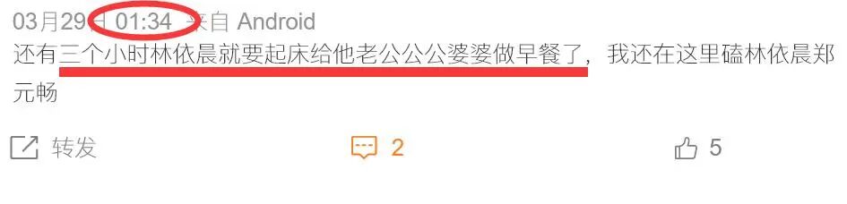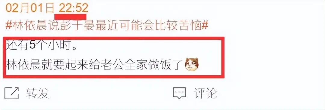 林依晨此举也遭来网友的戏谑,有网友在深夜11点发文称:“还有5个小时,林依晨就要起来给老公全家做饭了”。