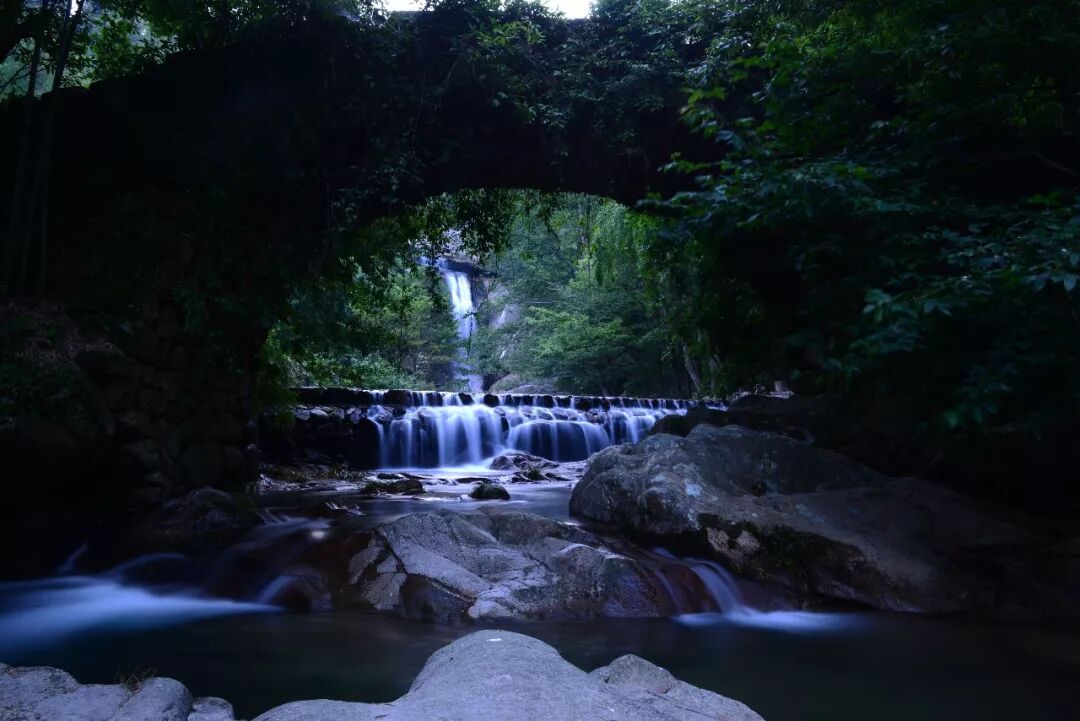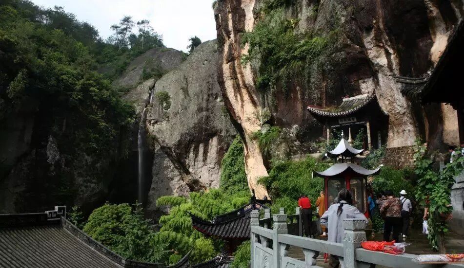 石梁已经介绍过了,那么就来说说明岩,明岩是寒石山东北面的一谷,谷中胜景颇多。明岩北面山崖上有初来洞、朝阳洞、老虎洞。初来洞有眉岩上有狐狸斗鸡的天然岩图,洞内有“达摩祖师西来影”,为清代乡贤齐召南宝论诗社旧址。朝阳洞现已扩建为朝阳庵峰顶有“金桔洞”,峰下有“白马上西天”的大岩图,山底是近代供奉寒山子佛龛的洞中殿。山顶上有 “明岩瀑”,西段是明岩最深幽的洞天。