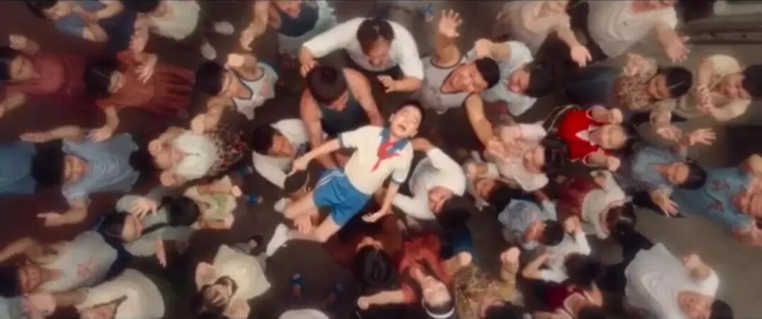 镜头一转,电视机的黑白画面里,女排队员们拿下了胜利的一分。风撩起了小男孩披在身上的床单,那一刻他就像一个超级英雄一样。《我和我的祖国》旋律响起……虽然没有亲历过那次胜利,不知道为什么鼻子有点儿酸,啊我的眼泪不值钱!