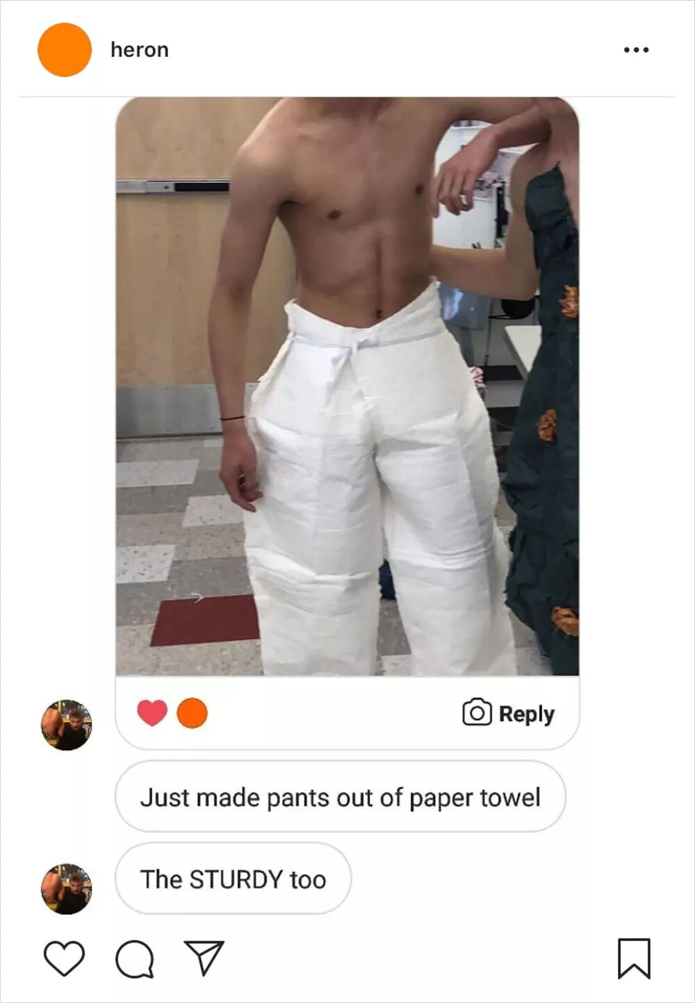 Heron Preston 日前收到了一些 “设计灵感” ,就像你看到的,该工作室利用了 “纸张” 和 “厕纸” 等生活中常见的材质来设计服饰,虽然呈现的只是服饰的概念样式,不过也相当有趣了。对此,Heron 也在附文中表示了要实验和尝试新的东西,但就 “厕纸” 而言,小编还是希望大家要节约资源……