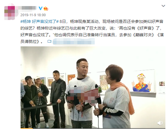近几年来,内地歌坛因受到网络歌曲冲击而发展受阻,相关的音乐综艺也发生了巨大改变,以至于杨坤这种老牌歌手纷纷开始谋划转型。早在2019年11月,杨坤在接受记者采访时就曾透露过这方面的变化,还笑称自己准备转行去当演员,去参加《演员请就位》等综艺节目。