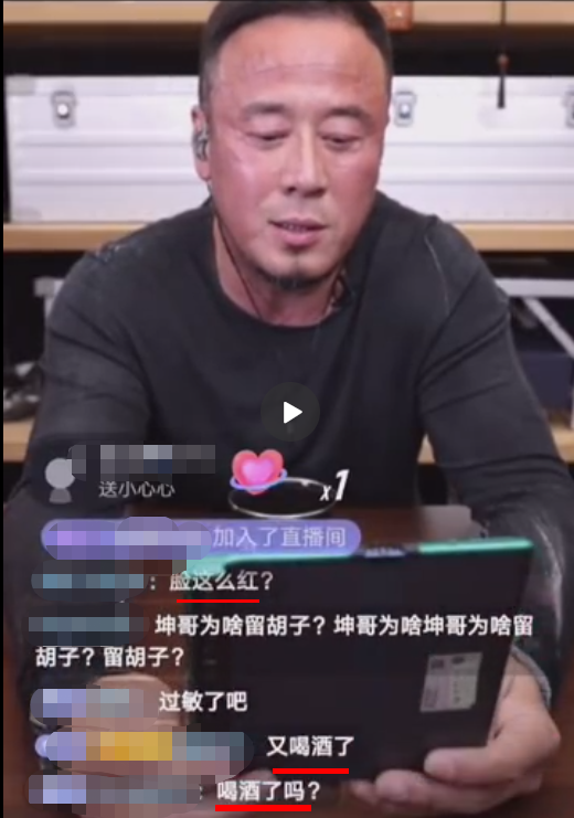 12月6日,歌手杨坤在某社交平台上直播带货。当天他留着标志性的小胡子,不仅从脖子到脸红成一片,神情疲惫,而且双眼迷茫,似乎含着泪水,整体状态看起来不是很好。