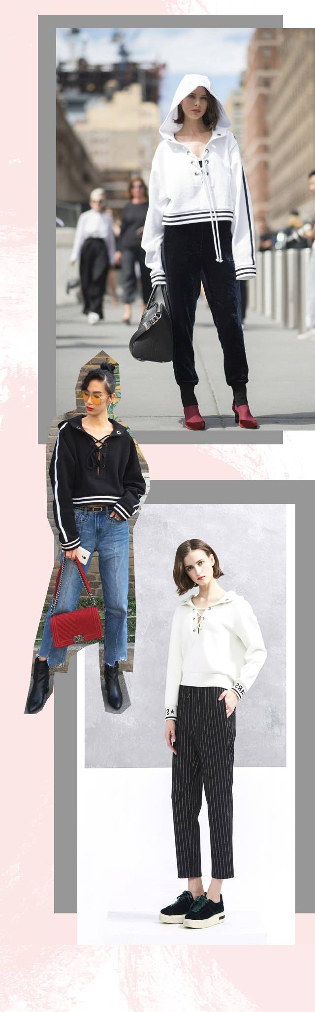 绑带卫衣是秋季的帅气有型首选。看时尚达人们一股不拘束随性的摩登便轻而易举的演绎出来了。