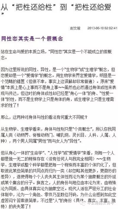 赵文瑄关于同性恋的文字微博内容