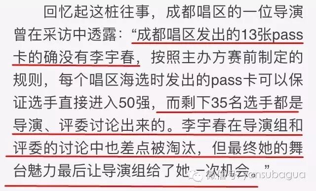 而李宇春在海选时还差点被淘汰了,最后因为她的舞台魅力,评委让她晋级了