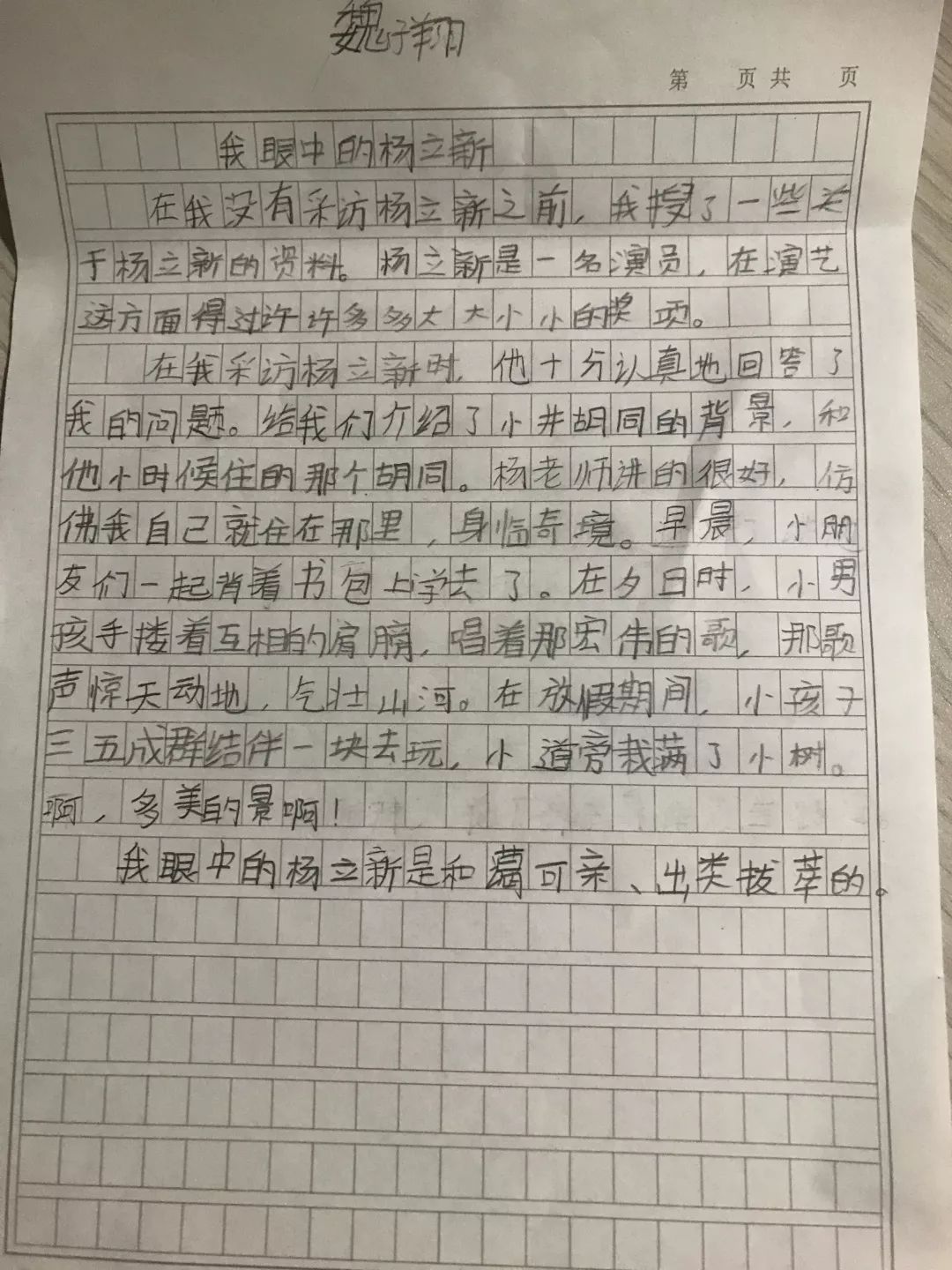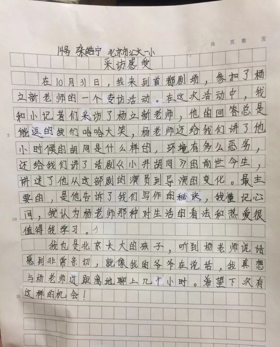 活动结束后,圆桌小记者们认真写下了参加此次访谈活动的感想——对杨立新老师和《小井胡同》有了新的认识,对老北京文化有了新的思考,对自己的成长有了新的启迪……
