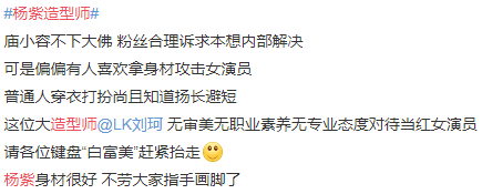 于是粉丝积压已久的怨气都爆发了,直接怼上了杨紫的造型师。