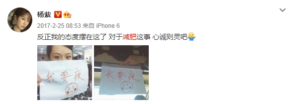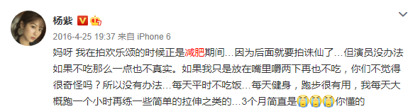 一直到现在,你去看她的微博,基本上每年都会出来那么好几条关于减肥的内容。