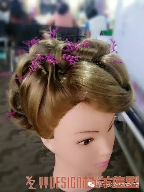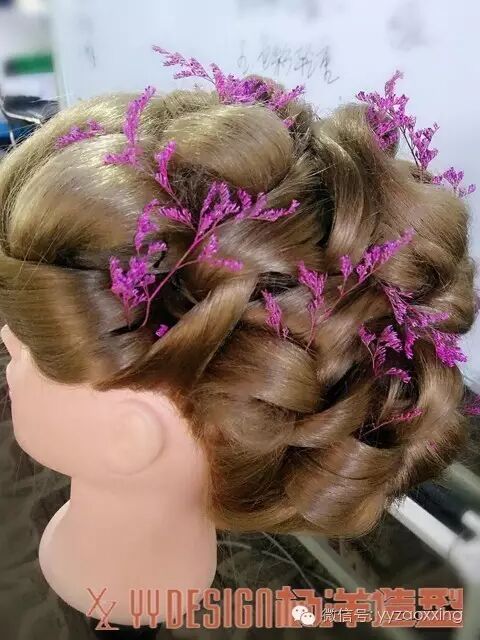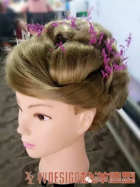 盘发是新娘在婚礼中最爱的发型,盘发会让新娘显得端庄而优雅,连微笑都带温暖、亲和力的味道。在发型中加入细细的花朵,浪漫而温馨的小花,可以自由地点缀在发丝中,不必太过规则,乱中有序,让发型更富有动感。让新娘既有至尊范儿,又不缺乏甜美可人的俏皮,仿佛正在经历那花样年华,幸福溢于言表。下面就跟着小编一起去杨洋造型看看朱云老师的这款新娘发型吧