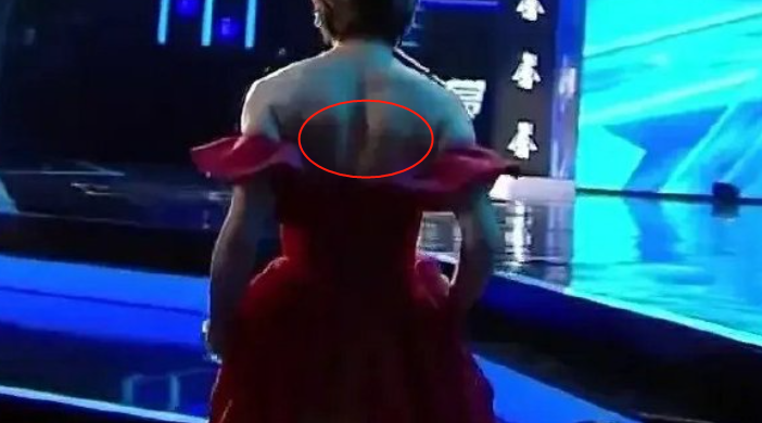 从光影的角度能看出,孙俪的肩胛骨下缘也外翻, 疑似变成了翼状肩胛。