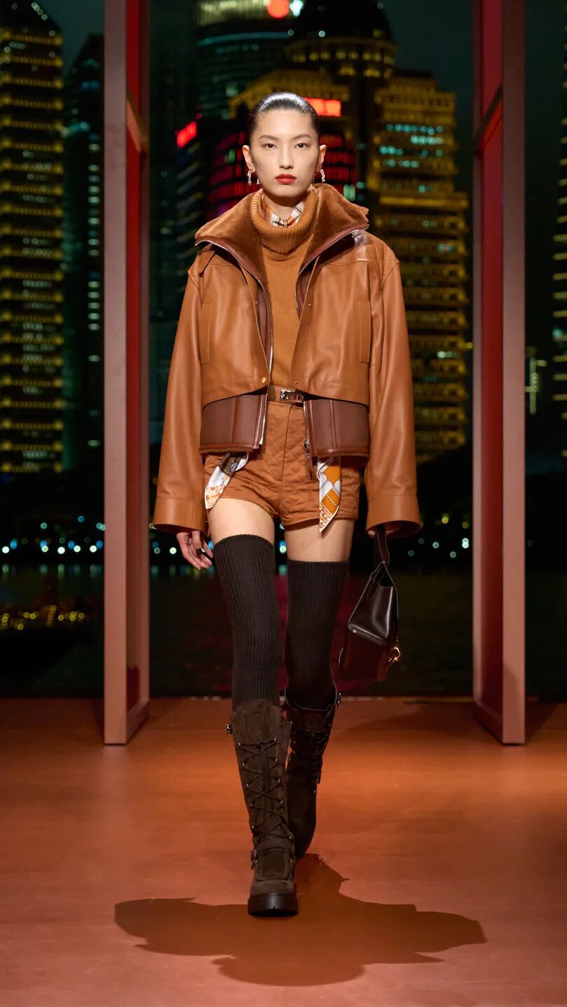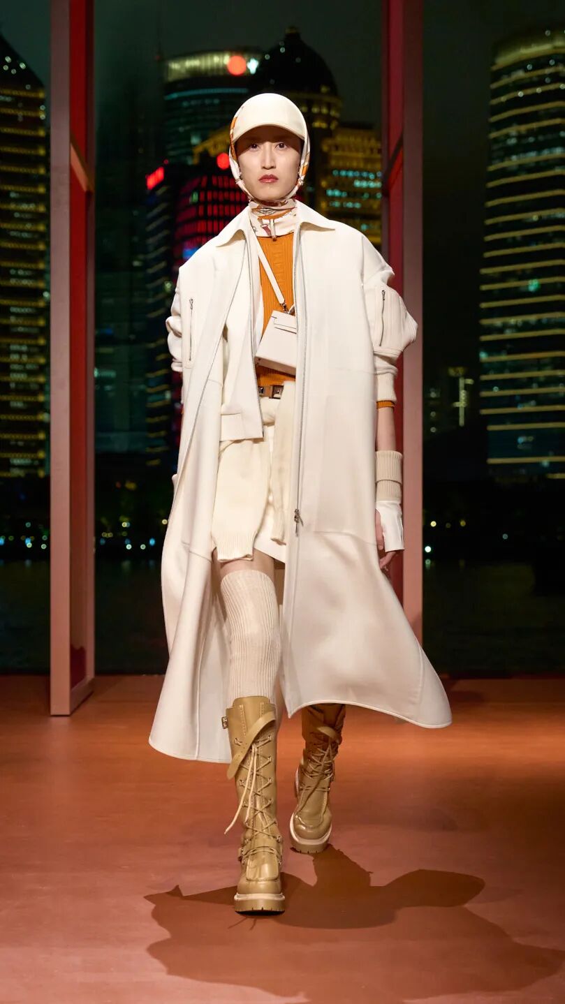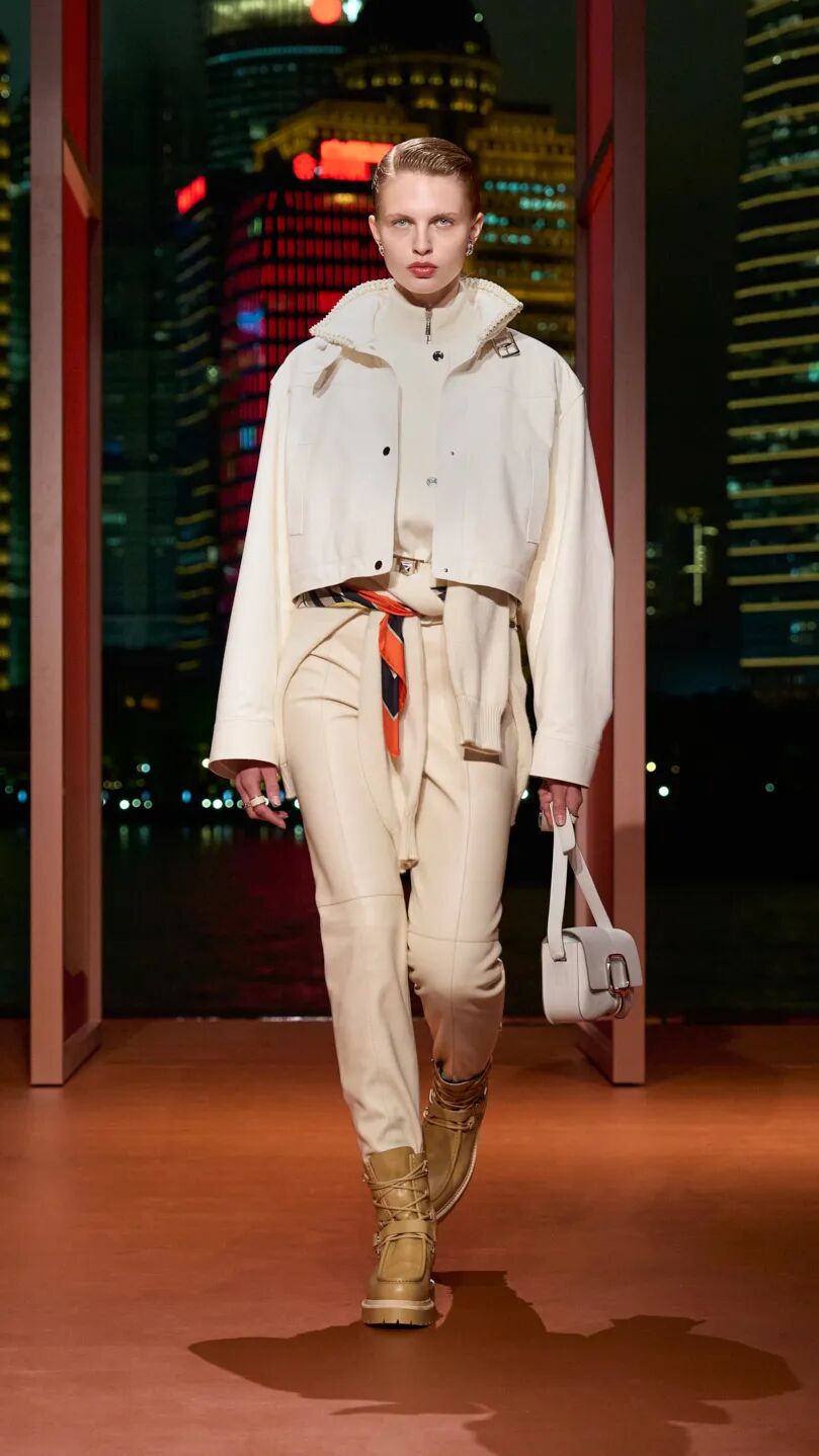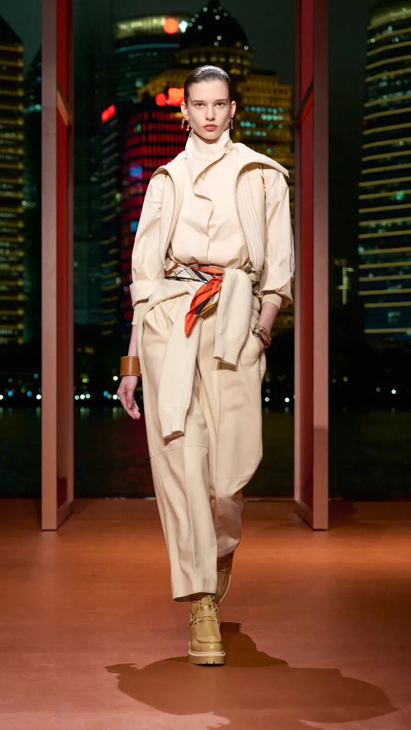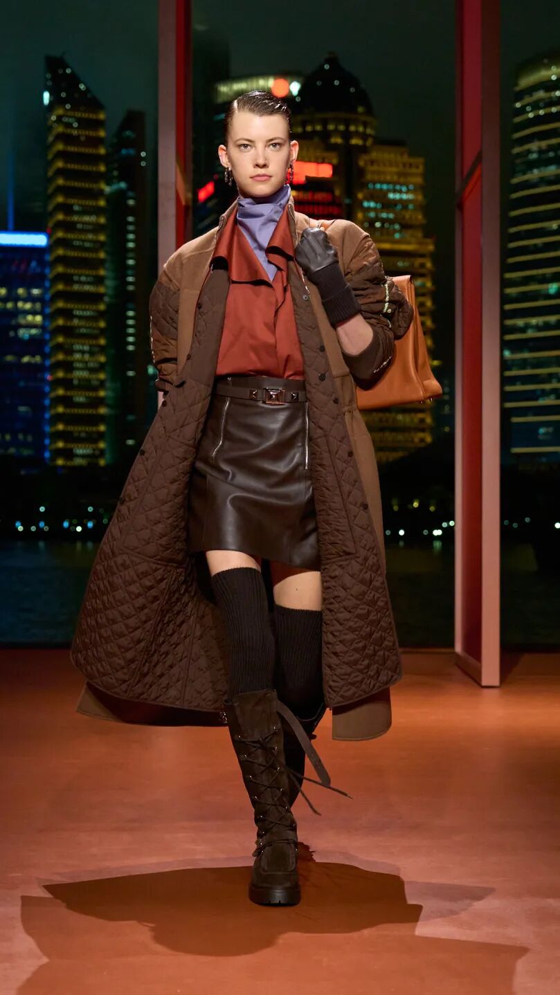 这是爱马仕女装艺术总监Nadège Vanhée打造的2025秋冬女装系列第二篇章,滨水之畔,以组合式设计打造的秀场空间内,一场自然与都市景观之间的对话悄然开启。