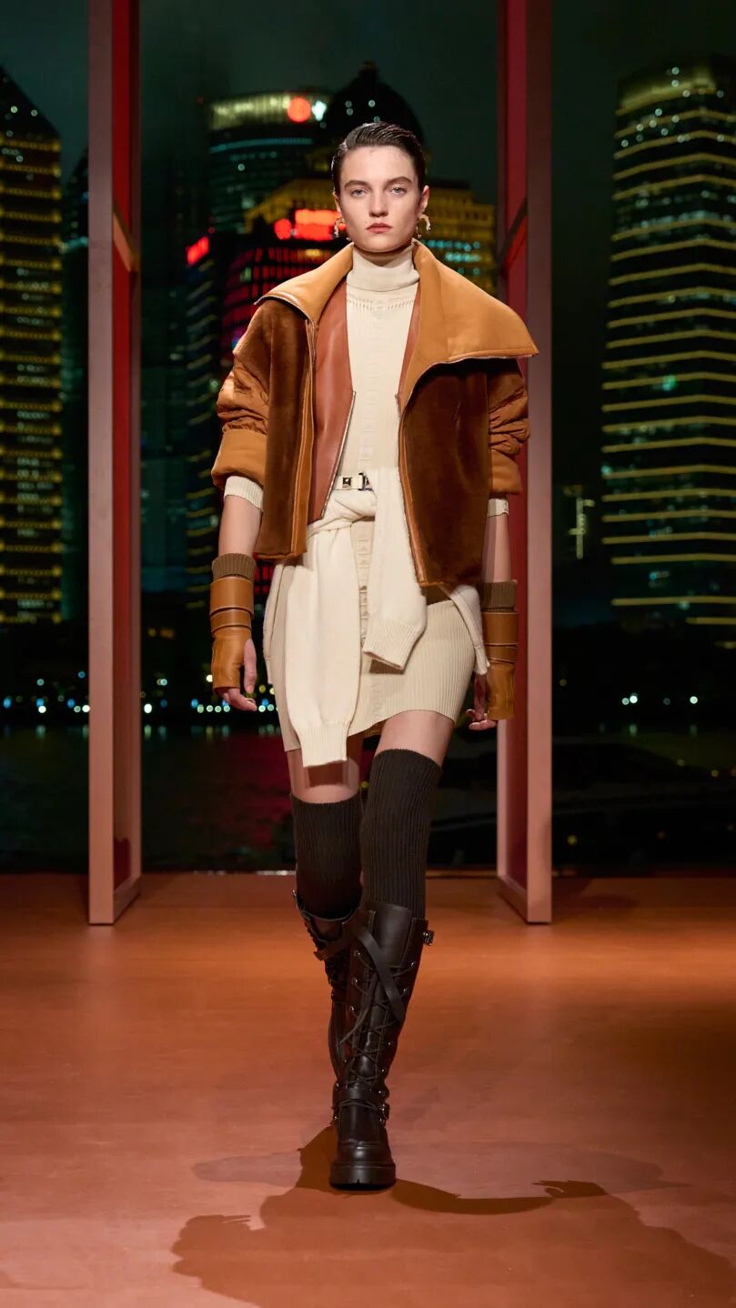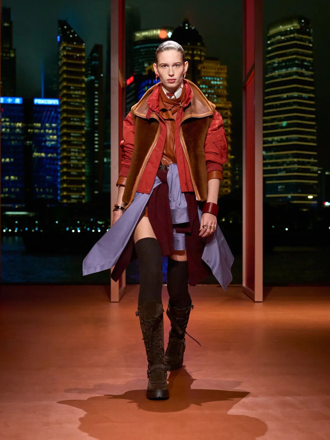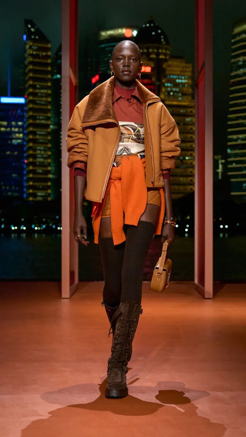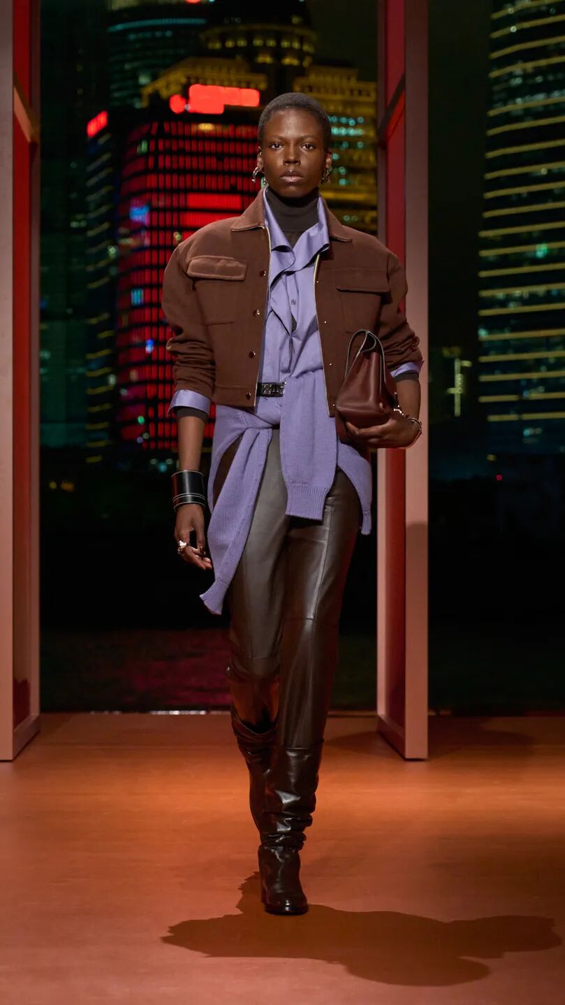 这是爱马仕女装艺术总监Nadège Vanhée打造的2025秋冬女装系列第二篇章,滨水之畔,以组合式设计打造的秀场空间内,一场自然与都市景观之间的对话悄然开启。