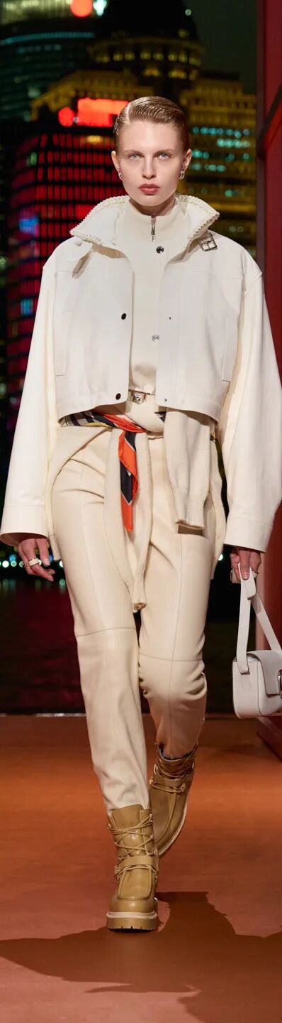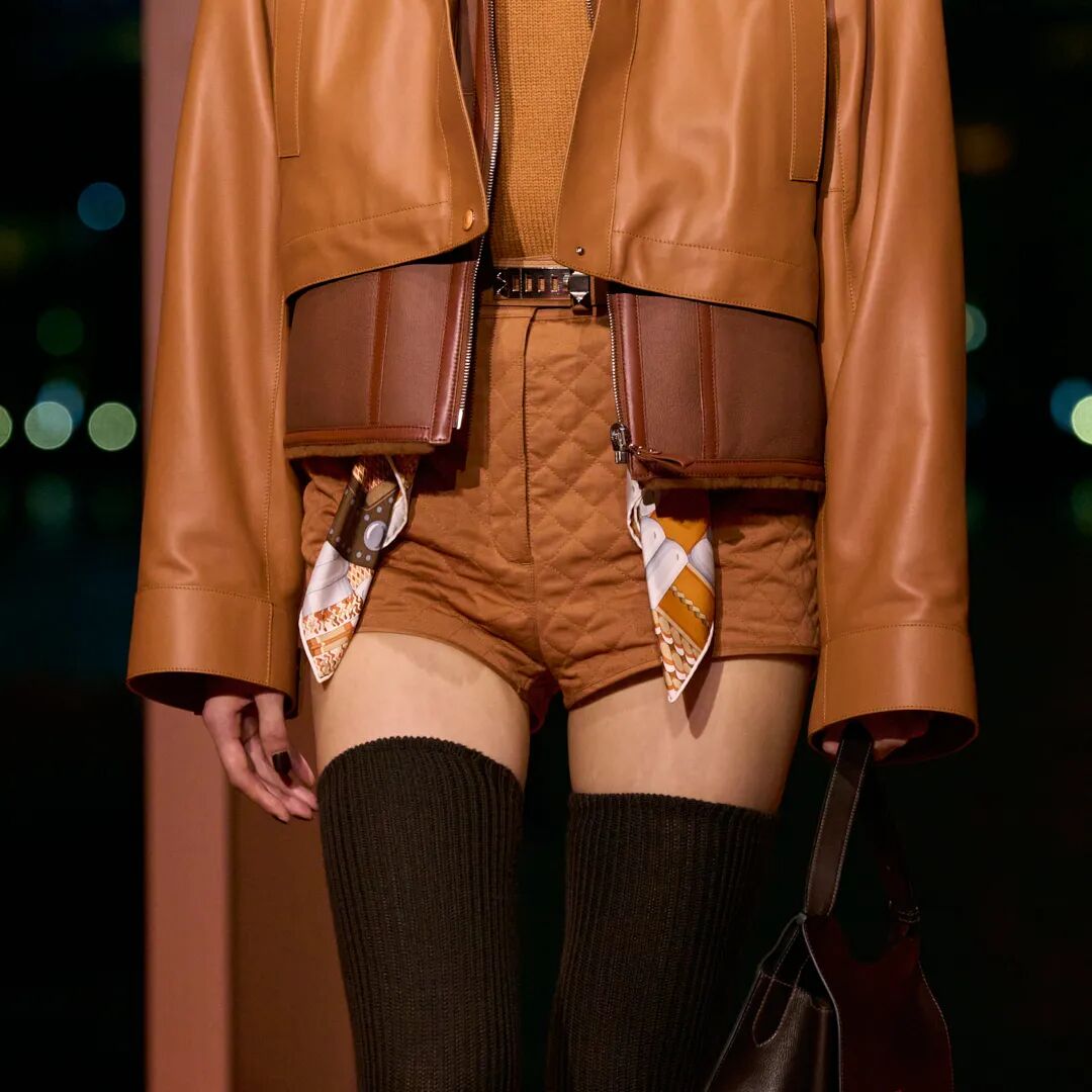 本系列围绕爱马仕的恒久的标志性元素——编织图案展开,充斥于整个系列中,这也象征着着跨越文化的联结与传承。这些图案出现在披风、绗缝夹克、丝巾等众多单品之上。