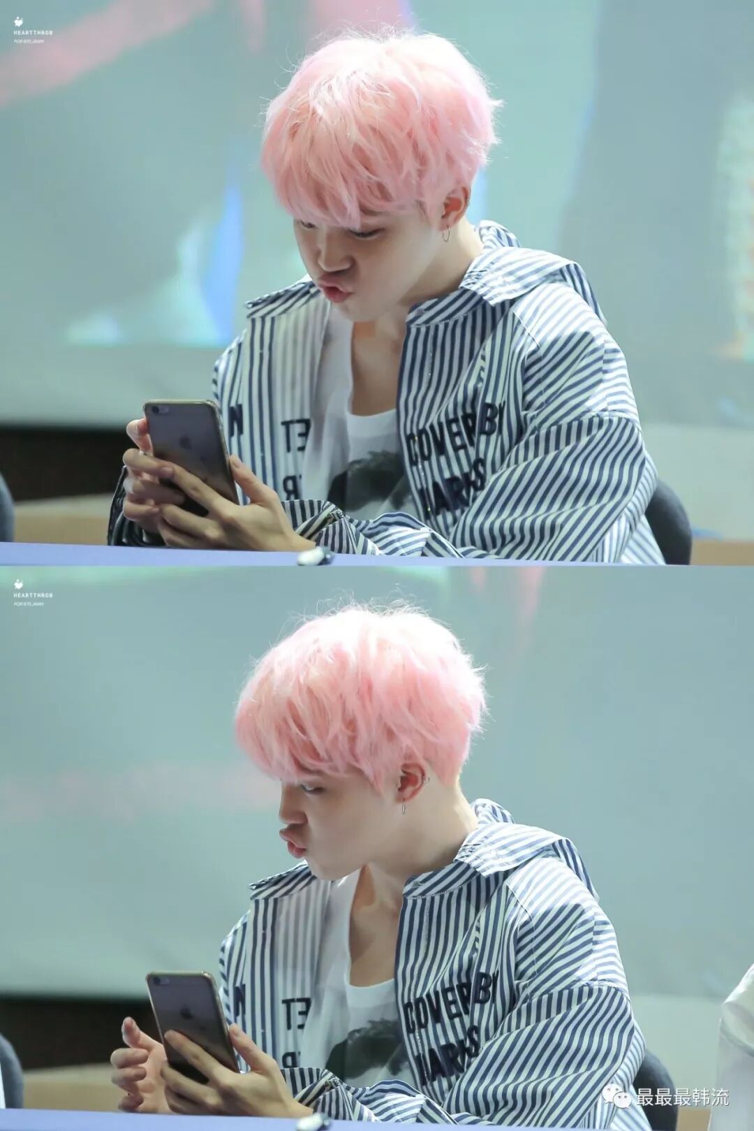朴智旻也是在男爱豆中出了名的发量大!看看这毛茸茸的后脑勺↓