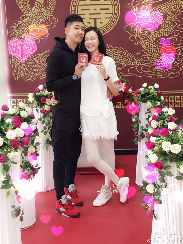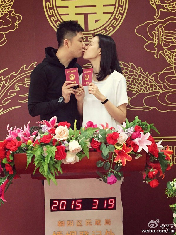 张徐宁透露,他们的领证日期是3月19日。当天上午,李艾就曾发微博暗示结婚,她发布一张脚尖对脚尖的脚部特写亲昵照,并配上暧昧的表情符号,眼尖的网友留言“这是民政局的地板”。当晚他们现身14/15赛季CBA总决赛第五场,用看球的方式庆祝结婚。