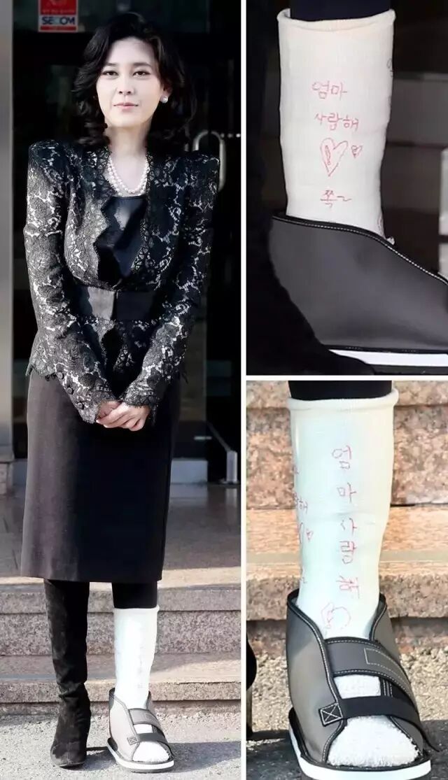 就算不慎摔断了腿,李富真还是忙着一天飞好几个地方谈合作签合同,出席公众场合时,她也依旧仪态优雅。