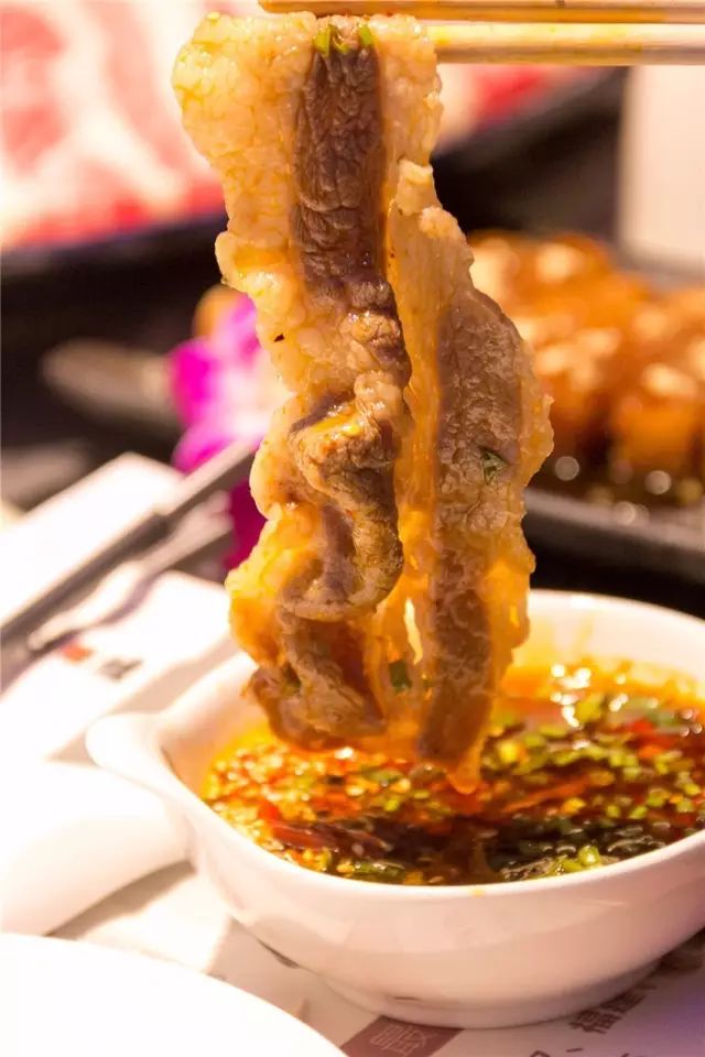 特级雪花肥牛,肉质细腻,不蘸调料直接一口塞进嘴里,肥而不腻的麻辣感从舌尖迅速延伸至整个味蕾