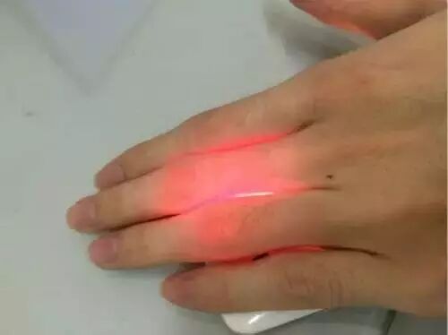 下面来看看这个实验,打开手电筒照射手指,看!连手指透光了,难不成还隆手了?