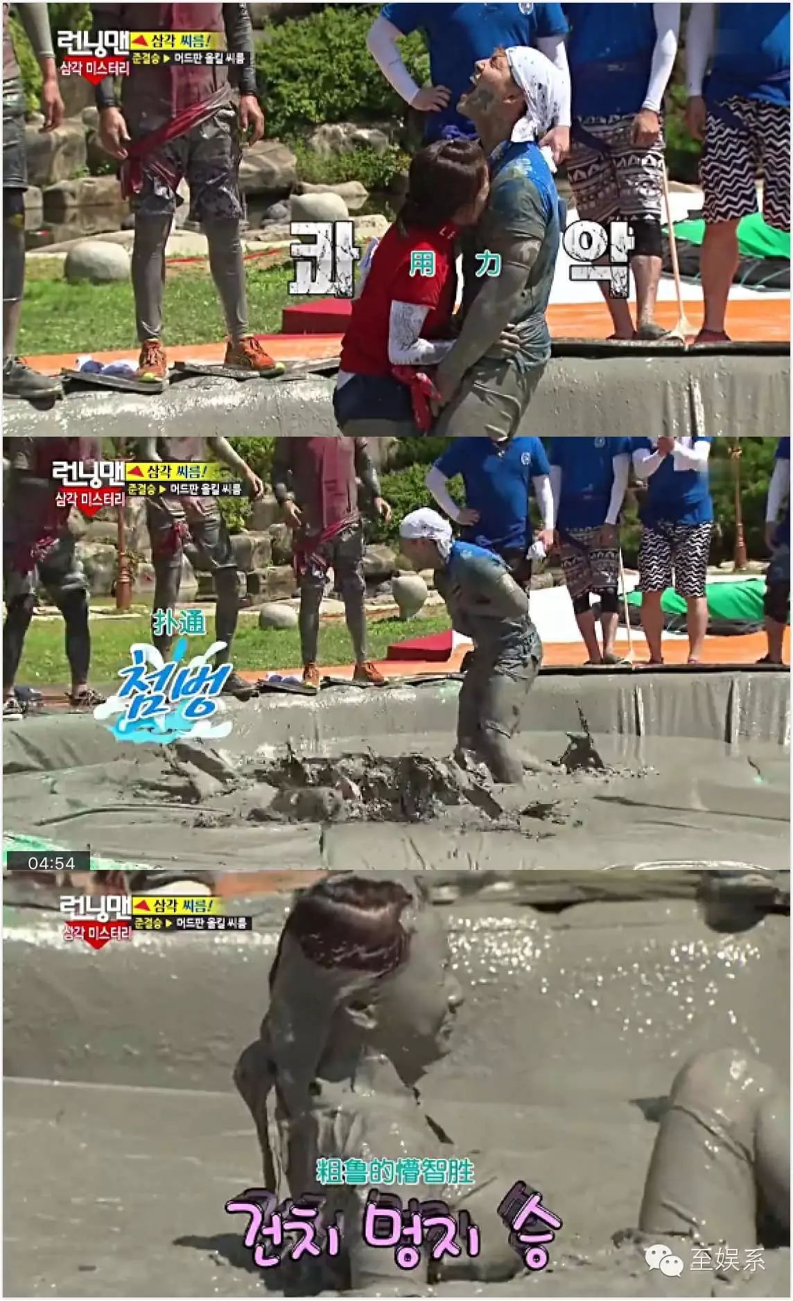 跟金钟国泥潭摔跤,被对方抓起来后,直接朝着人家胸就是一口,被金钟国摔在泥潭里,光荣的赢了,同时也成了金钟国最怕的三位女人之一。