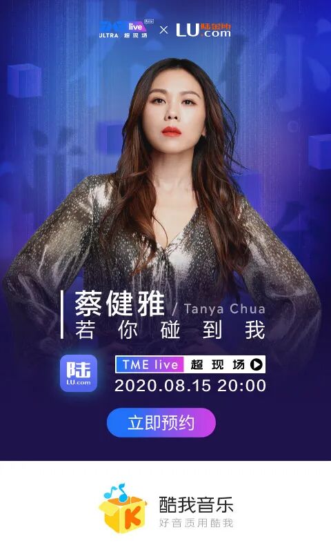 8月15日晚20点,由平安陆金所冠名播出的蔡健雅“若你碰到我”超现场演出即将在酷我音乐同步直播。