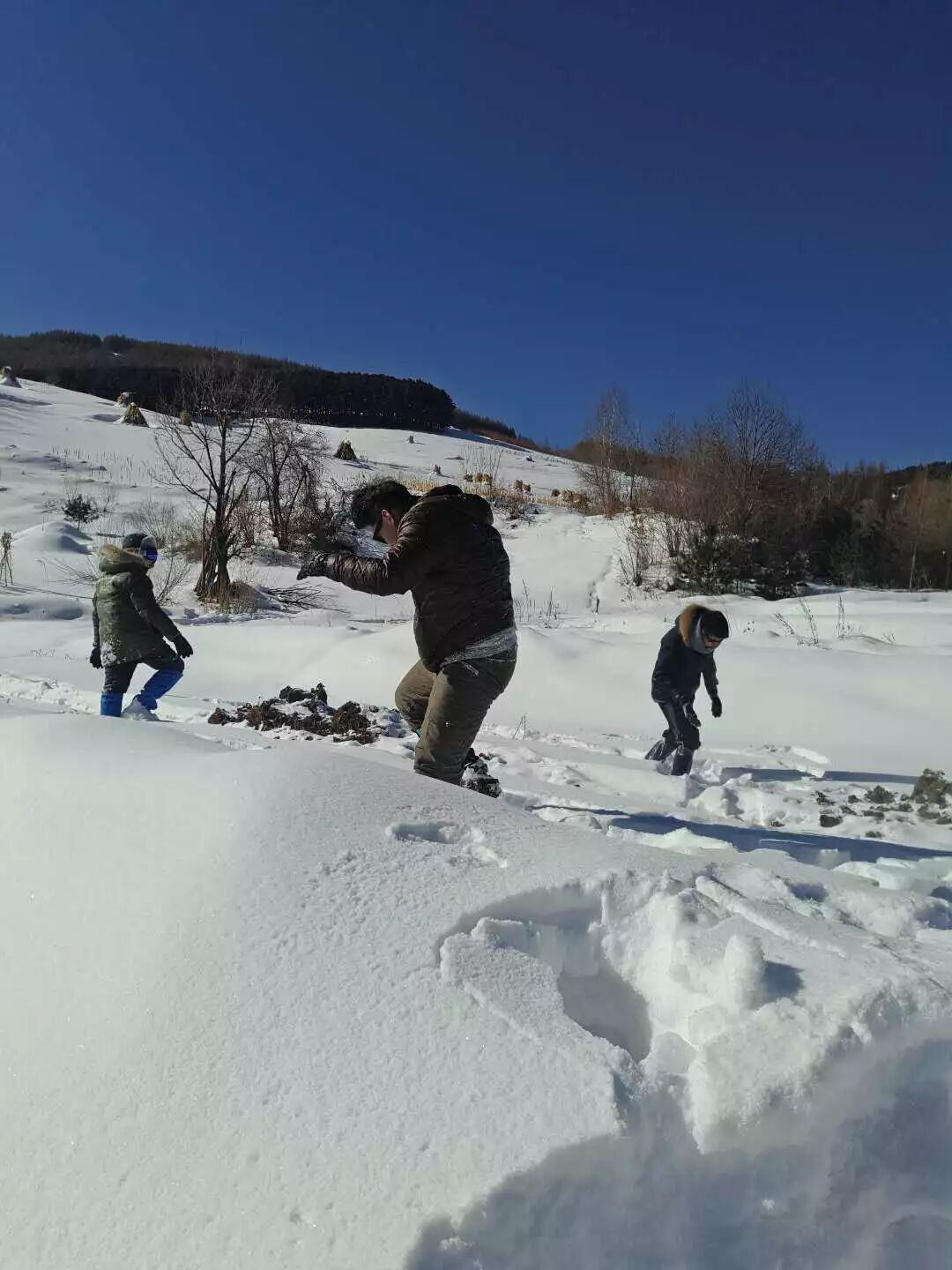 收拾好了之后,小伙伴就开始在雪地里撒欢玩了起来——