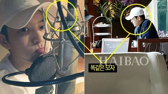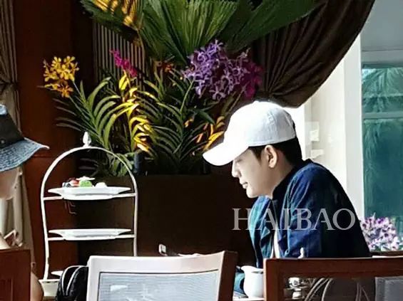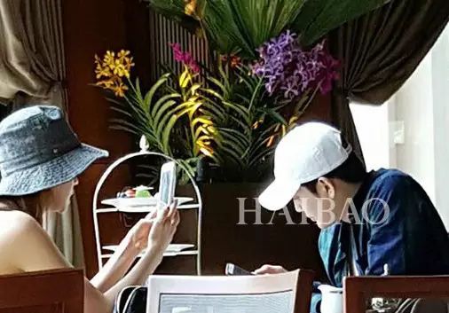 照片中,神似李多海和Se7en的两人在餐厅里喝下午茶,两人均戴着帽子,把玩着手机。