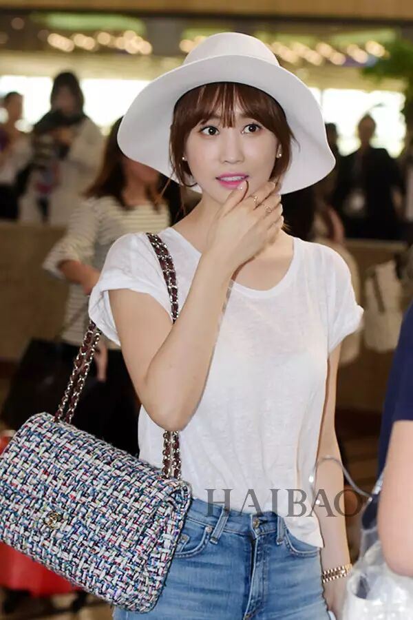 李多海2016年4月30日韩国金浦机场街拍:背Chanel粗花呢手袋前往上海