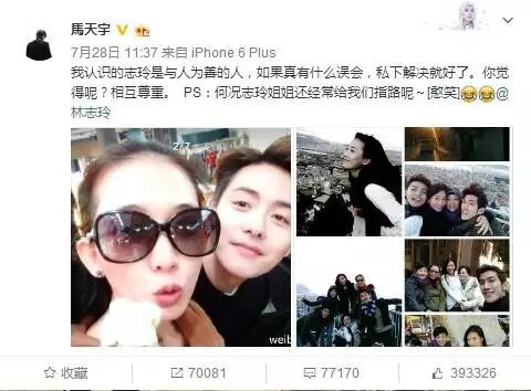 作为志玲姐姐好友的雪姨王琳和马天宇也先后出来发文支持林志玲,称林志玲一直是个与人为善的人。