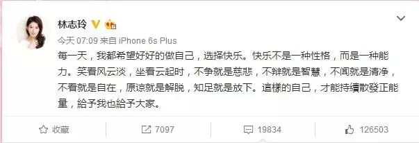 但素!今天早上7点左右,林志玲终于发文,疑似回应被骂事件,小编激动了一把,马上跑去围观,志玲姐姐全文云淡风轻,尽显高素质以及高情商,满满的正能量。