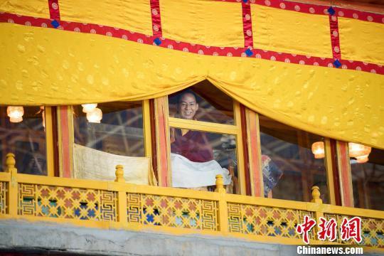 在日喀则期间,班禅大师观摩了扎什伦布寺僧人《中观学》《般若学》《俱舍论》《戒律学》等显宗教法体系立宗答辩会和扎什伦布寺“斯莫钦波节”(跳神驱鬼的宗教仪式)并朝拜了扎什伦布寺错钦大殿。图为:全国政协常委、中国佛教协会副会长班禅额尔德尼·确吉杰布大师观摩扎什伦布寺“斯莫钦波节”(跳神驱鬼的宗教仪式) (图片来源:中国新闻网 摄影:何蓬磊)