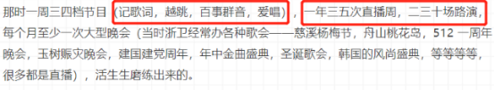 最红的朱丹,一周要主持三四档节目,一年三五次直播周,二三十场路演,每个月至少一次大型晚会,除此之外,朱丹还发布唱片,参加电视剧演出,接拍广告......