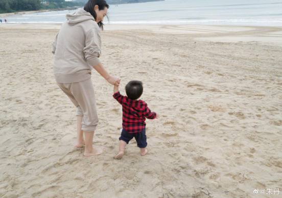 微博上,朱丹晒出的亲子日常,也只有她和孩子。
