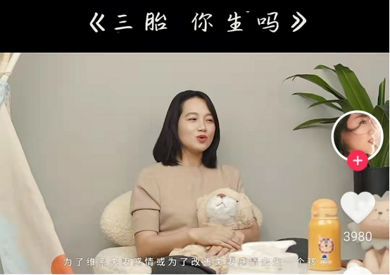她在发表“三胎”这个话题时,提到很多妈妈都是丧偶式育儿,为了改善夫妻感情去生一个孩子,只会迅速地把妈妈击垮。